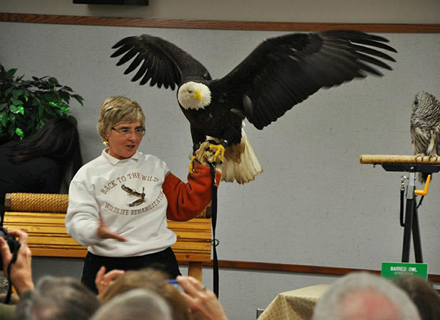 Back to the Wild ambassador American Bald Eagle with center founder Mona Rutger. Photo courtesy of Back to the Wild